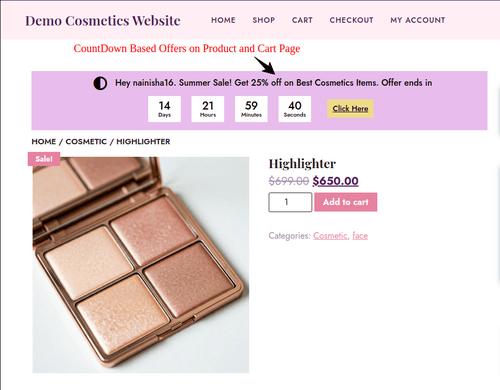 In this demo, we’ve integrated two powerful plugins to maximize sales. First, the Dynamic Cart Messages Pro for WooCommerce plugin displays personalized offers and countdowns on product and cart pages, encouraging customers to complete their purchases and add additional products to avail of the offers.