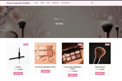 In this example, we used the Free WordPress Theme for Beauty Hair Salon. It would perfectly fit cosmetics because it allows beauty products displayed in a very attractive, professional-looking fashion. It is full of customization options, so you can change colors, fonts, and even layouts until you have created a look that is yours.