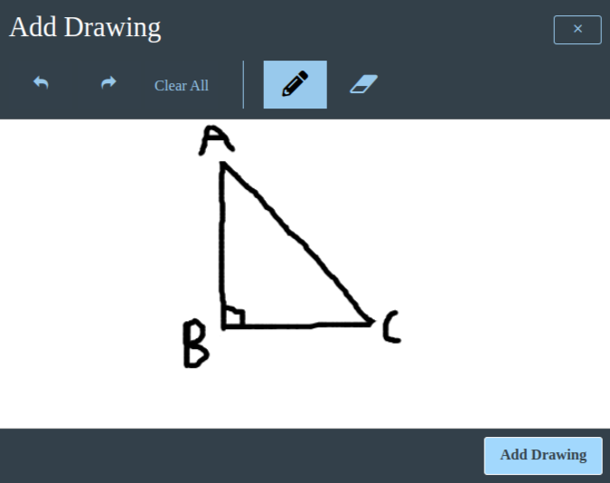 We developed a custom drawing tool that allows students to switch to canvas mode for a question on click of button and would allow the student to draw, erase and clear the drawings. Once a student draws something, we save the drawing as an image on the quiz completion and is later available to the instructor or the teacher reviewing the answers of the students in the backend.