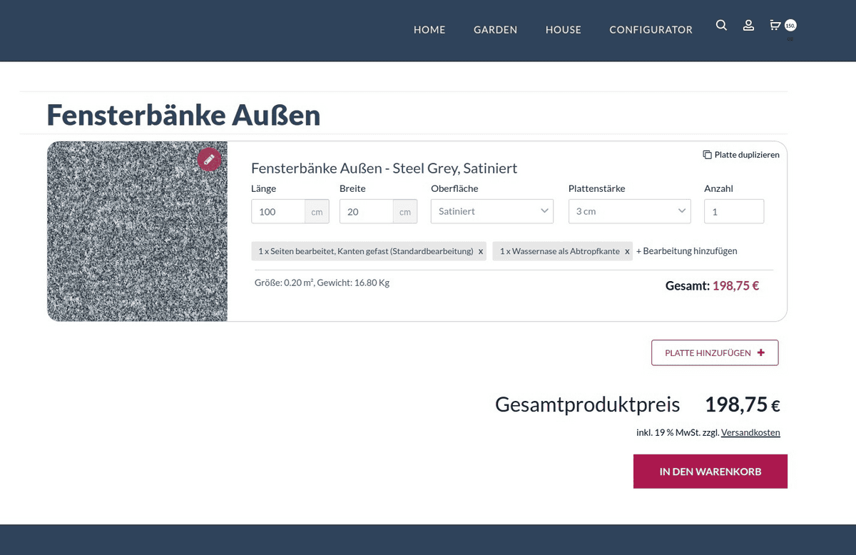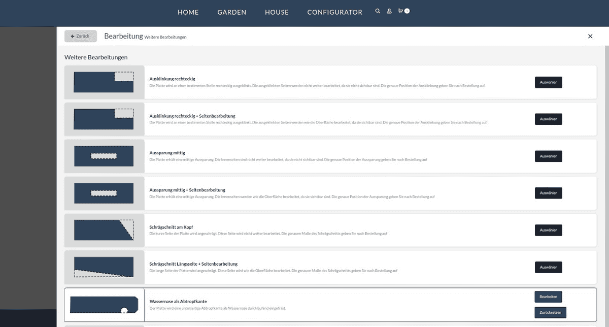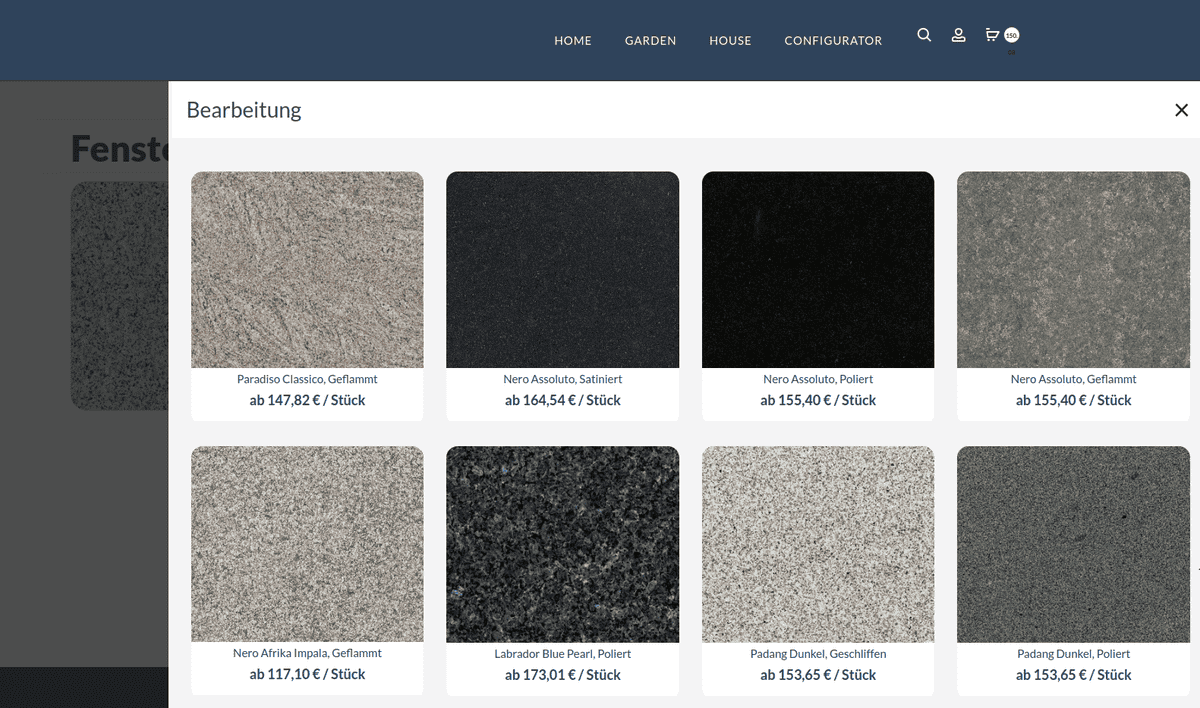 Our client is a leading tiles manufacturer and retailer based in Europe. They wanted a solution that allowed their customers to choose, configure and customize kitchen tops as per their needs and the total price is calculated based on the product and different configurable options chosen by them.