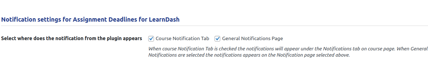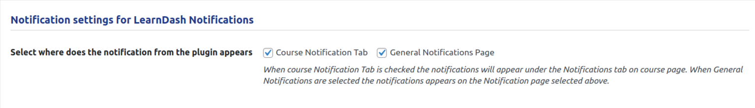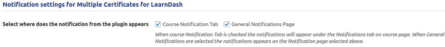 Administrators have the flexibility to control where notifications from the above plugins appear—be it on the Course Notification tab, the General Notification page, or both.