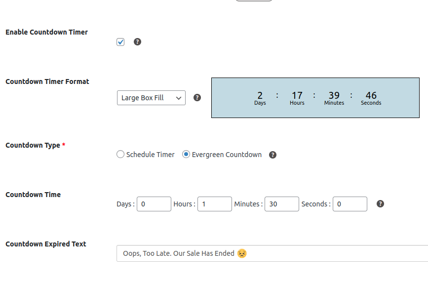 The countdown timer prompts customers to make swift purchases by showing them how much time is left to avail special offers. You can choose between Scheduled Countdown for precise sale periods and Evergreen Countdown for continuous urgency.