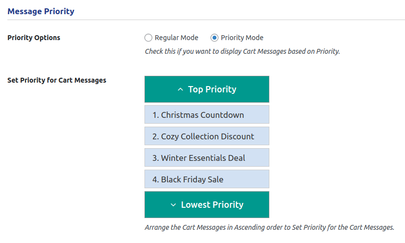 Maximize the impact of your promotions with the “Prioritize Cart Messages” feature. This innovative tool empowers you to order cart messages by priority, ensuring customers see the most relevant offers first. Say goodbye to cluttered messaging and hello to a streamlined, strategic approach that not only simplifies the shopping experience but also encourages larger purchases.