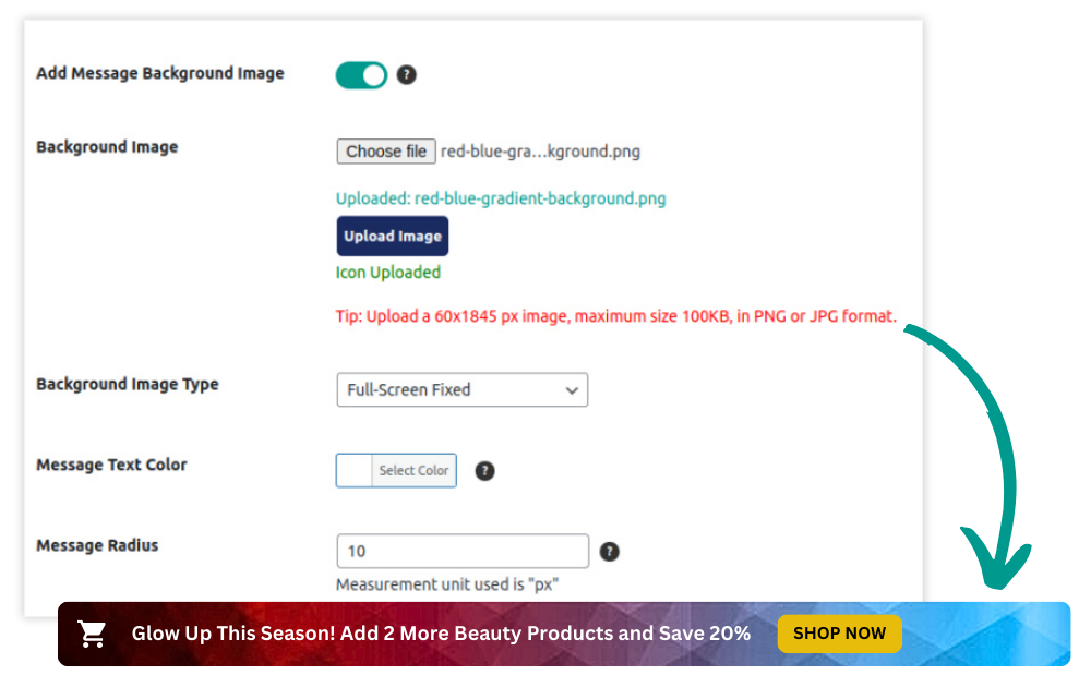 Dictate the visual theme of your cart messages and icons with customizable color schemes. Set the tone of your store’s messaging to match your brand’s aesthetic, creating a cohesive and engaging shopping experience.