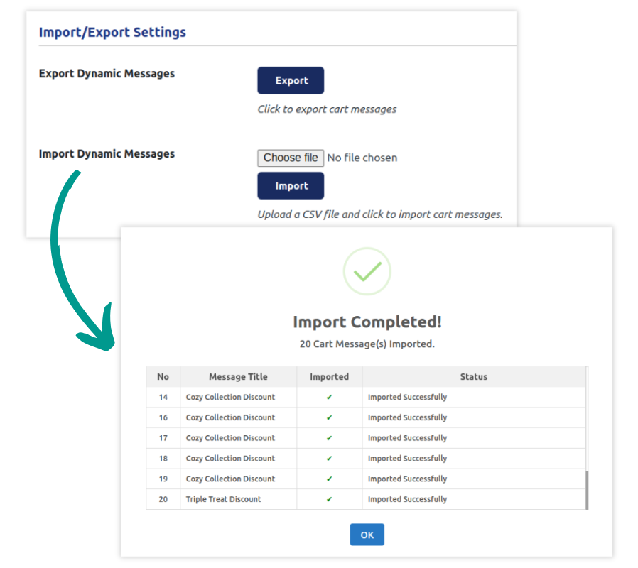 Streamline your WooCommerce cart messages with the new Import & Export feature, allowing you to easily back up or transfer dynamic cart messages. By exporting all your WooCommerce cart notices into a CSV file, you can migrate to a new store or restore messages effortlessly. Simply upload the file to instantly apply all settings, eliminating the need for manual data entry and ensuring uninterrupted cart messaging.