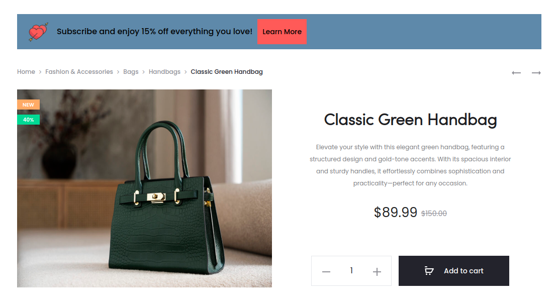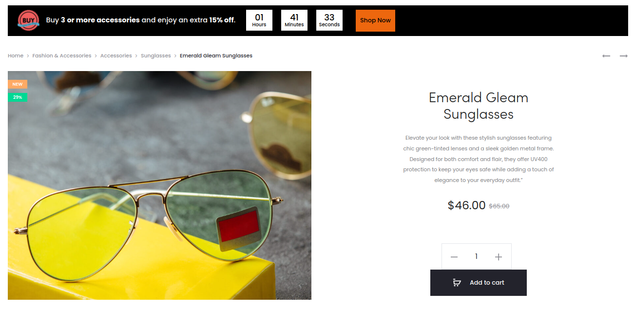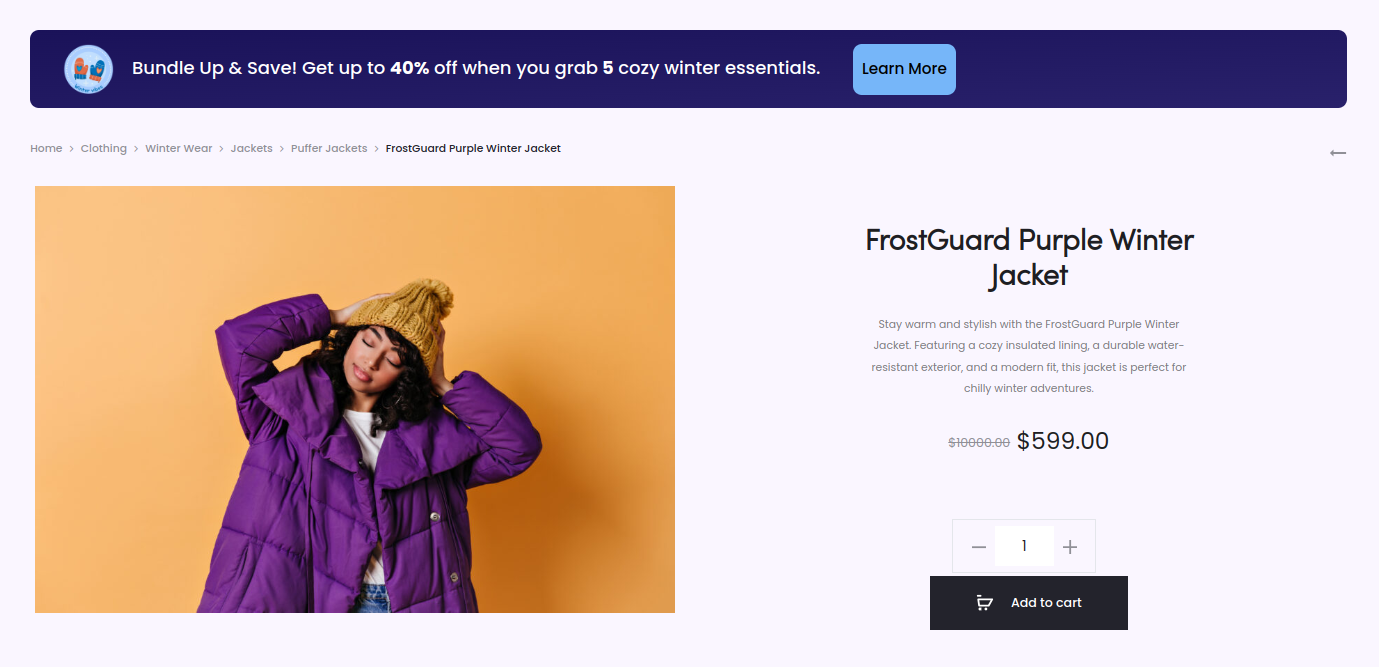 For instance, display a message like, “Buy 3 or more and save an additional 15%” when the customer adds multiple items to their cart.