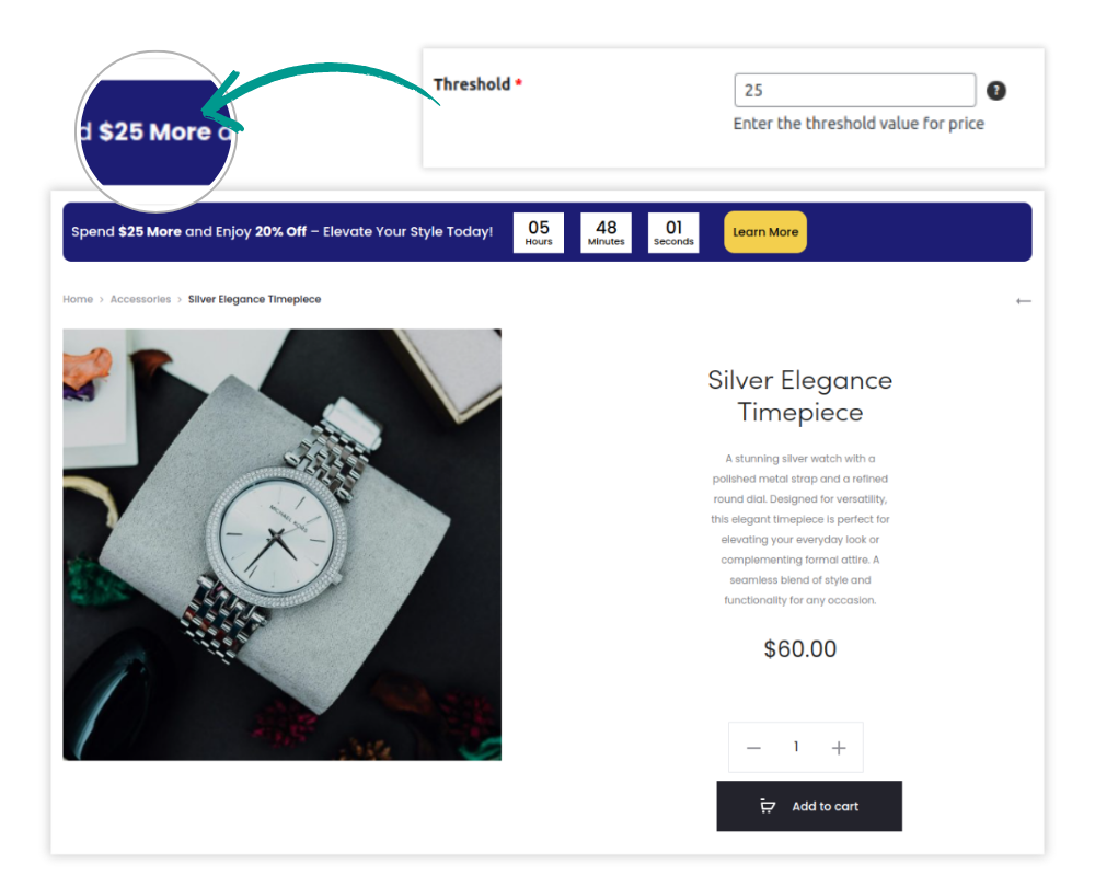 This nudge encourages customers to add one or more extra items to meet the threshold, increasing their overall purchase value and boosting your average order size.