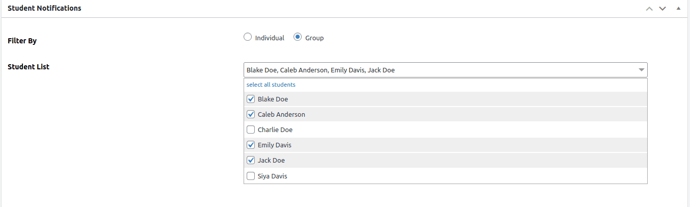 Whether addressing an entire group or a single student (individual learner), ensure your message hits the mark. On top of that, you can cherry pick students who you particularly want to send the LearnDash email to within the list of students that have been qualified based on your chosen criteria.