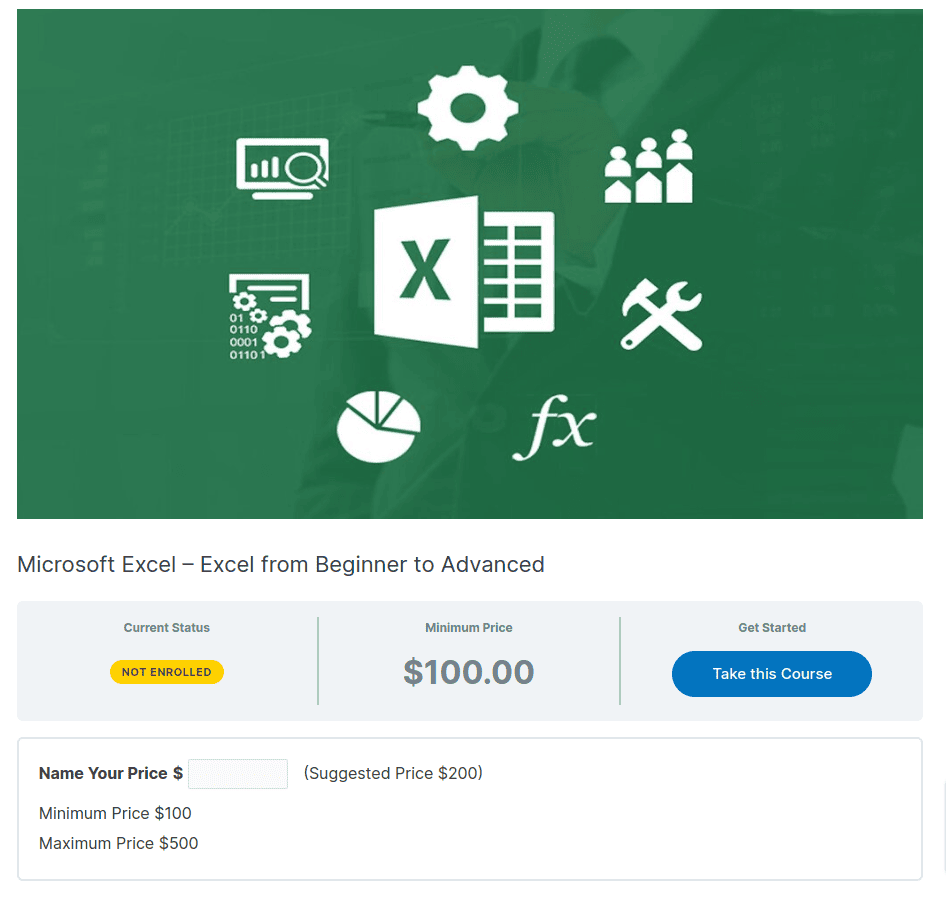 With Name Your Price for LearnDash , we’ve encapsulated this powerful concept into a plugin tailored for LearnDash. Picture granting your users the freedom to set their own price, enabling them to ascertain the true market value or approach sales from a unique perspective. Our plugin doesn’t stop there—it also provides the option to suggest an ideal price to users and define both minimum and maximum price thresholds for your LearnDash courses.