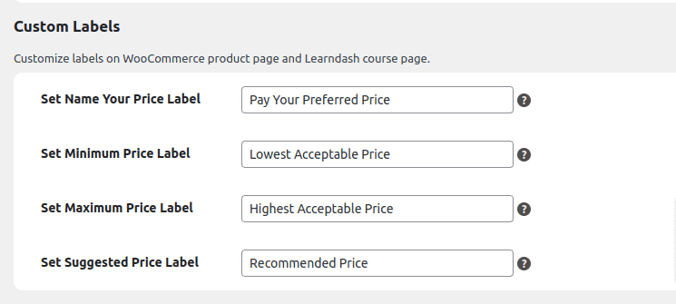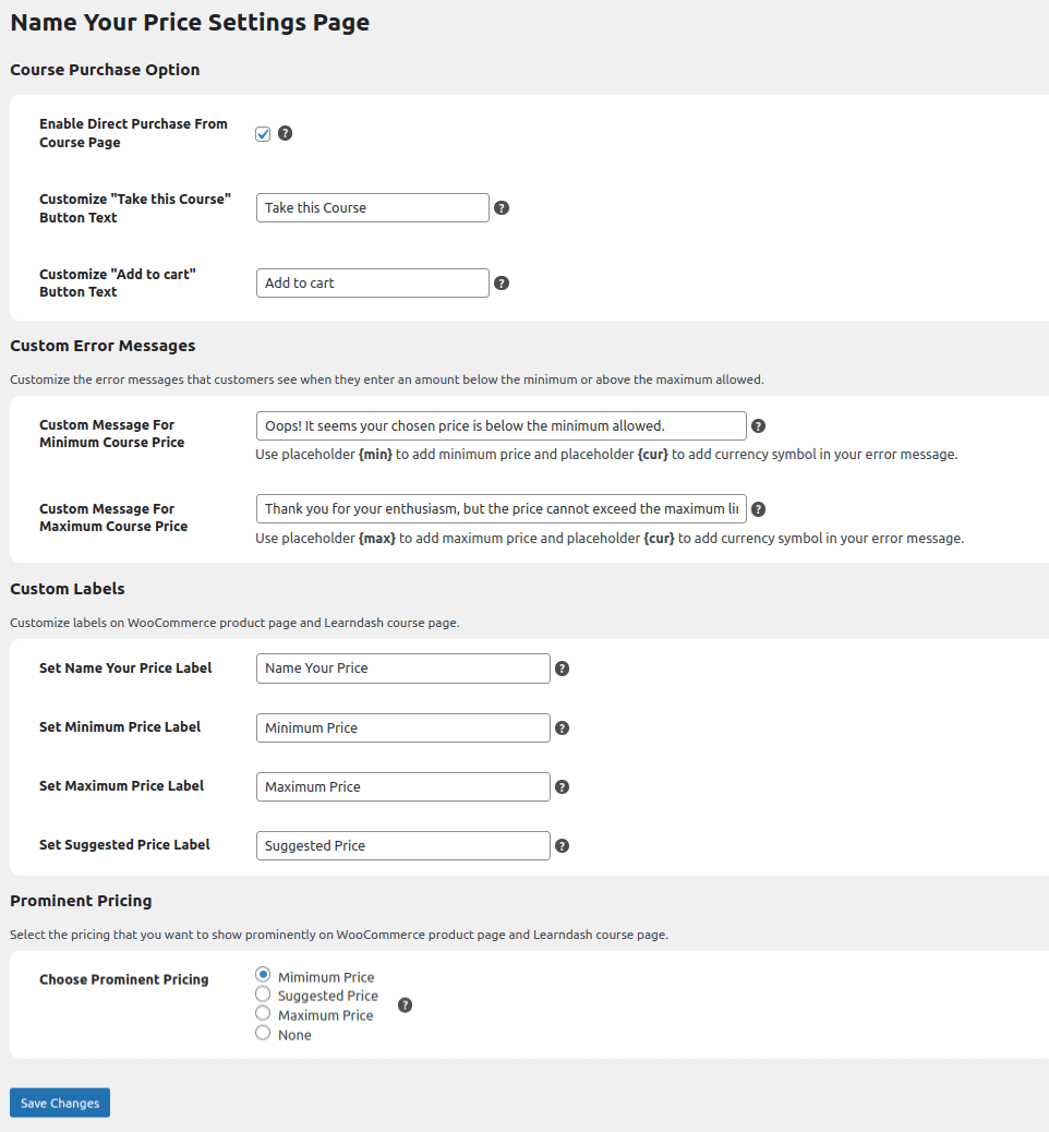 There are many customization options provided by the “Name Your Price” plugin, giving you control over button text, error messages, labels, and prominent pricing display on your LearnDash and WooCommerce integrated website.