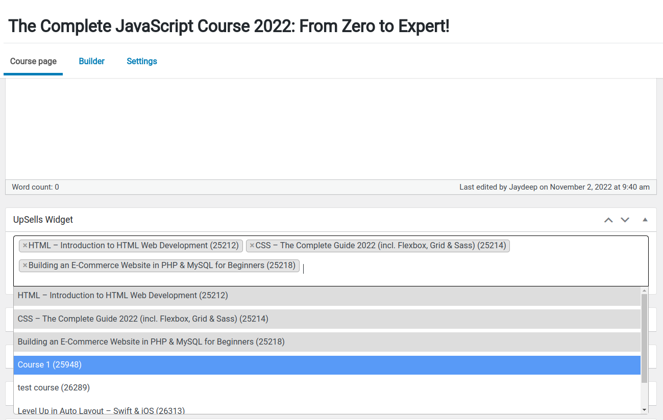 - Allows you to set UpSells in one click from the course page backend after your eLearning site is set up. i.e. all WooCommerce / EDD listings are associated with LearnDash courses.