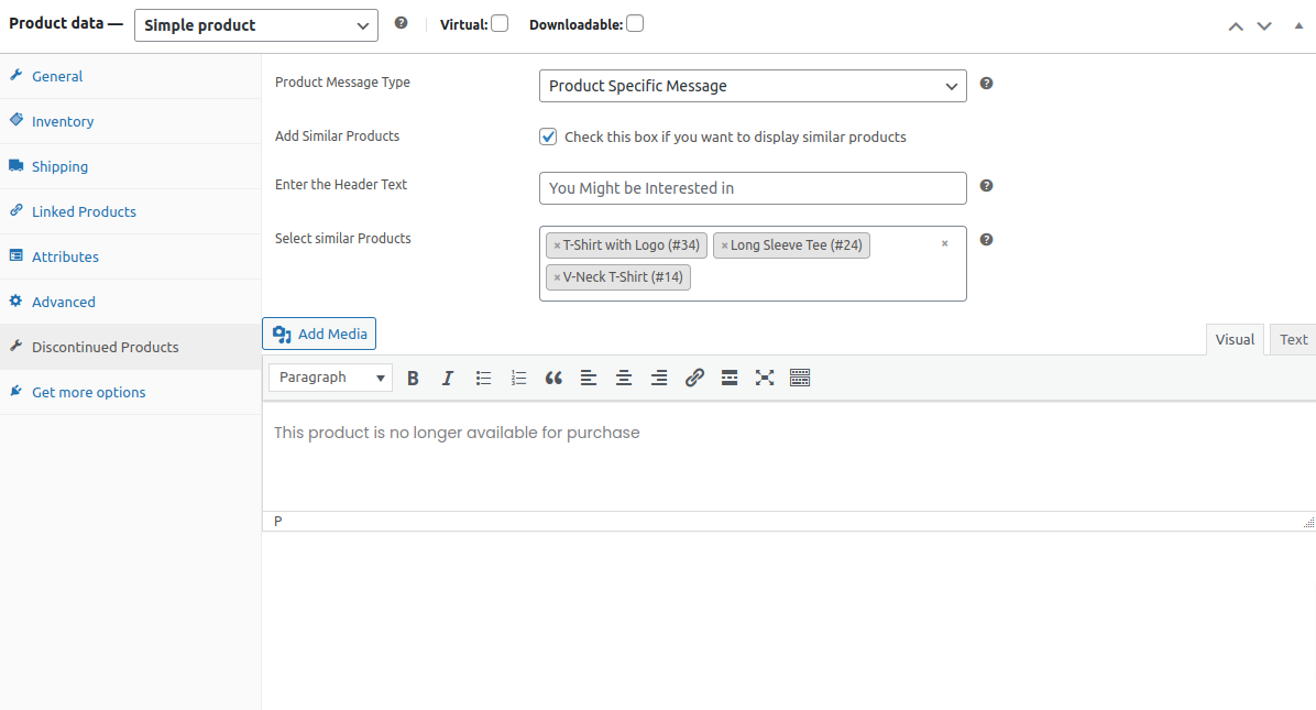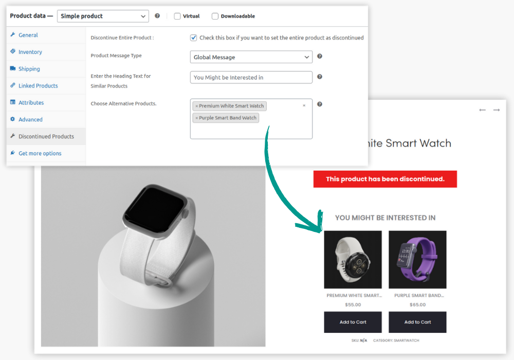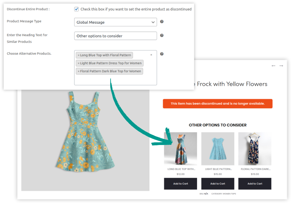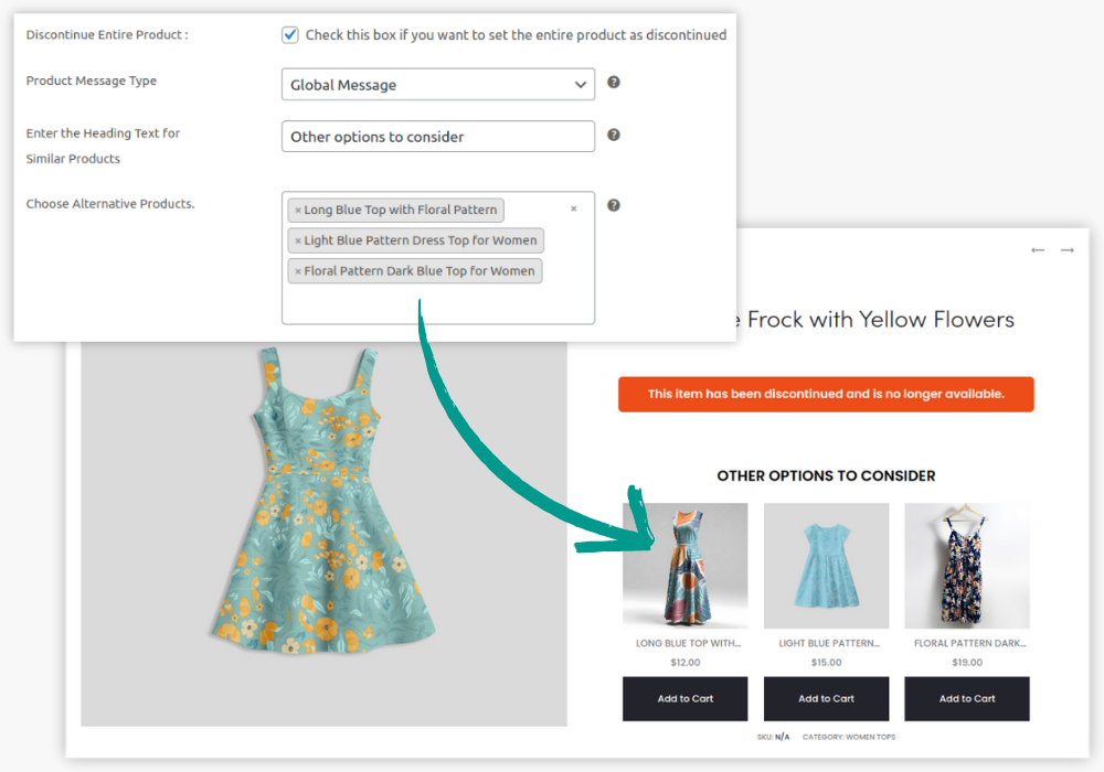 Our plugin lets you link up to four similar products on each WooCommerce discontinued products page, making it easy for customers to find alternatives.