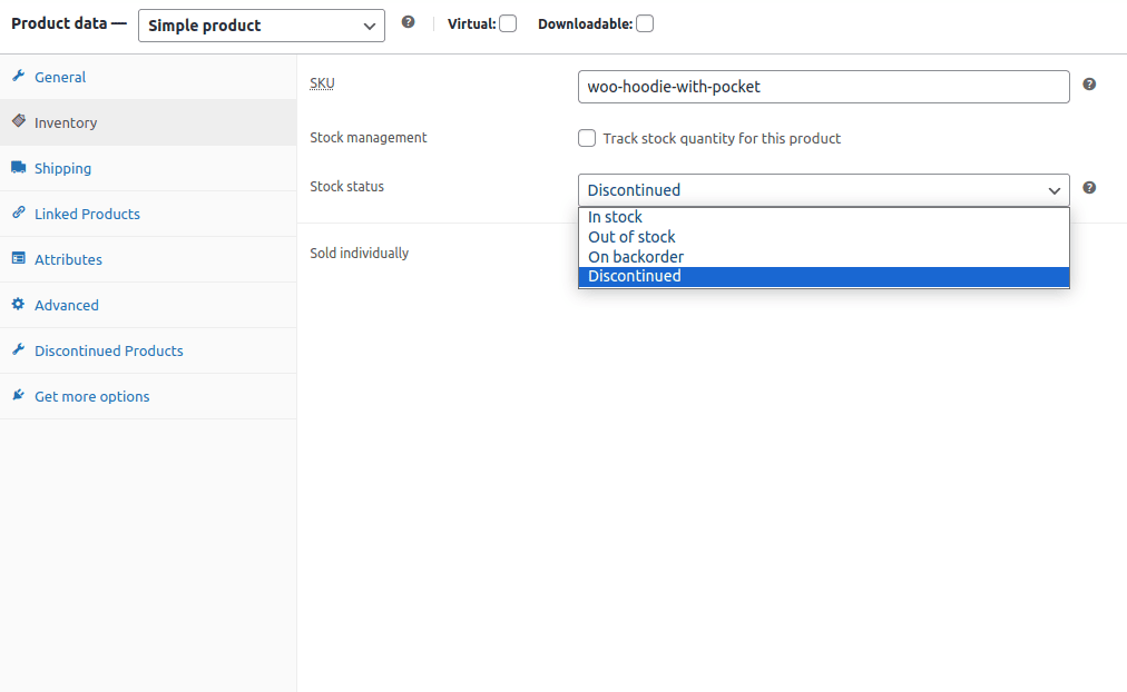 Set your products to automatically switch to discontinued stock status WooCommerce settings when inventory levels hit zero.