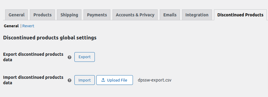 If you’re planning to migrate your WooCommerce discontinued products to another WooCommerce site, this feature will come in handy. It allows you to export all of your discontinued products’ settings, messages, and alternative products set at the product-level and global level, then import it into your new store.