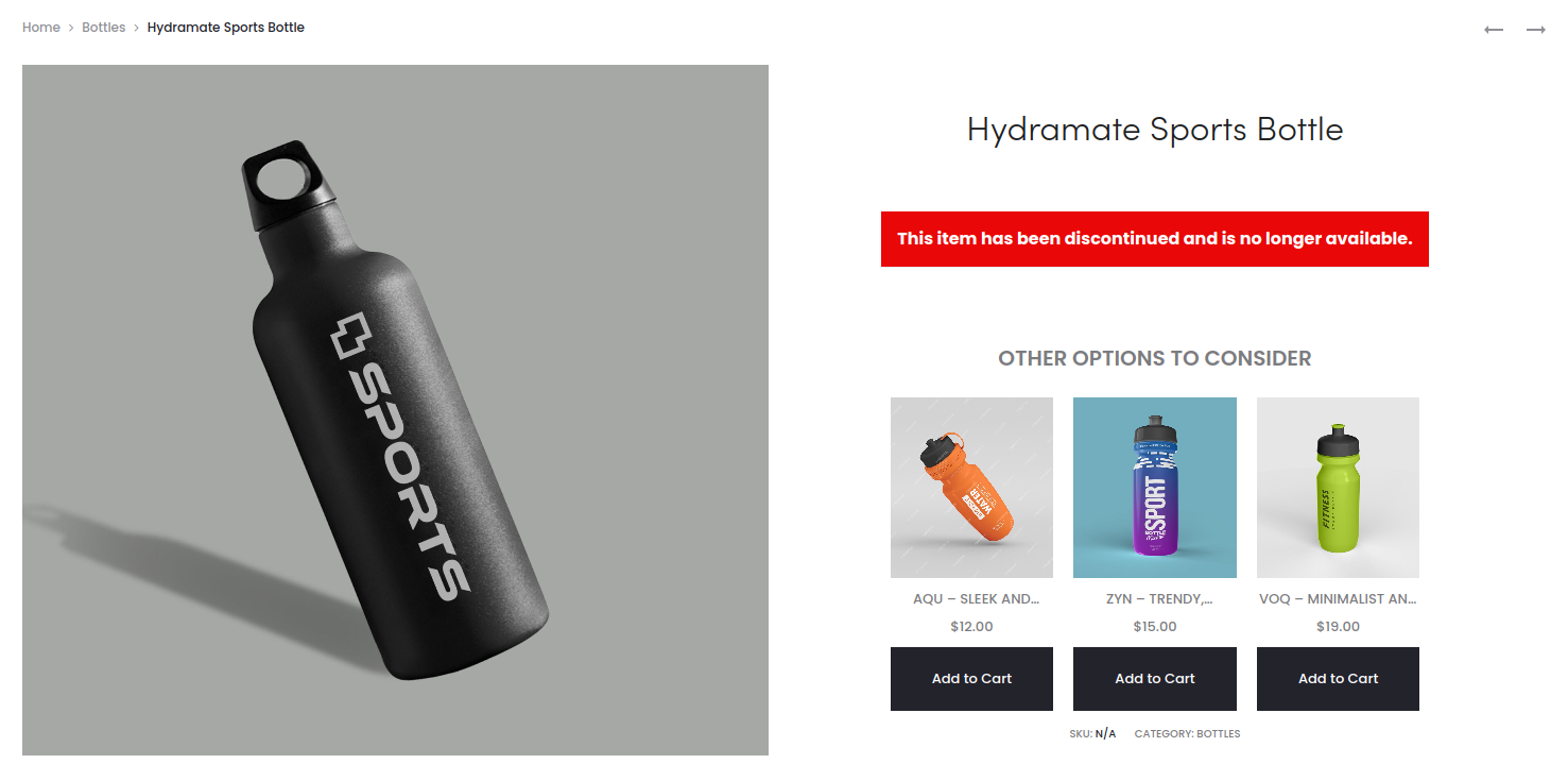 During this phase, you can display new brand alternatives on the discontinued product page, helping customers easily switch to the new options and keeping them engaged without confusion.