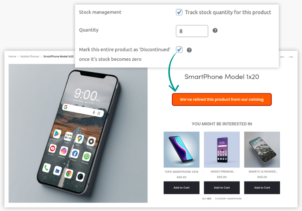 For stores selling products that come in updated models (such as electronics or fashion), when an older model becomes obsolete, you can use the plugin to automatically mark it as WooCommerce discontinued products and display newer alternatives.